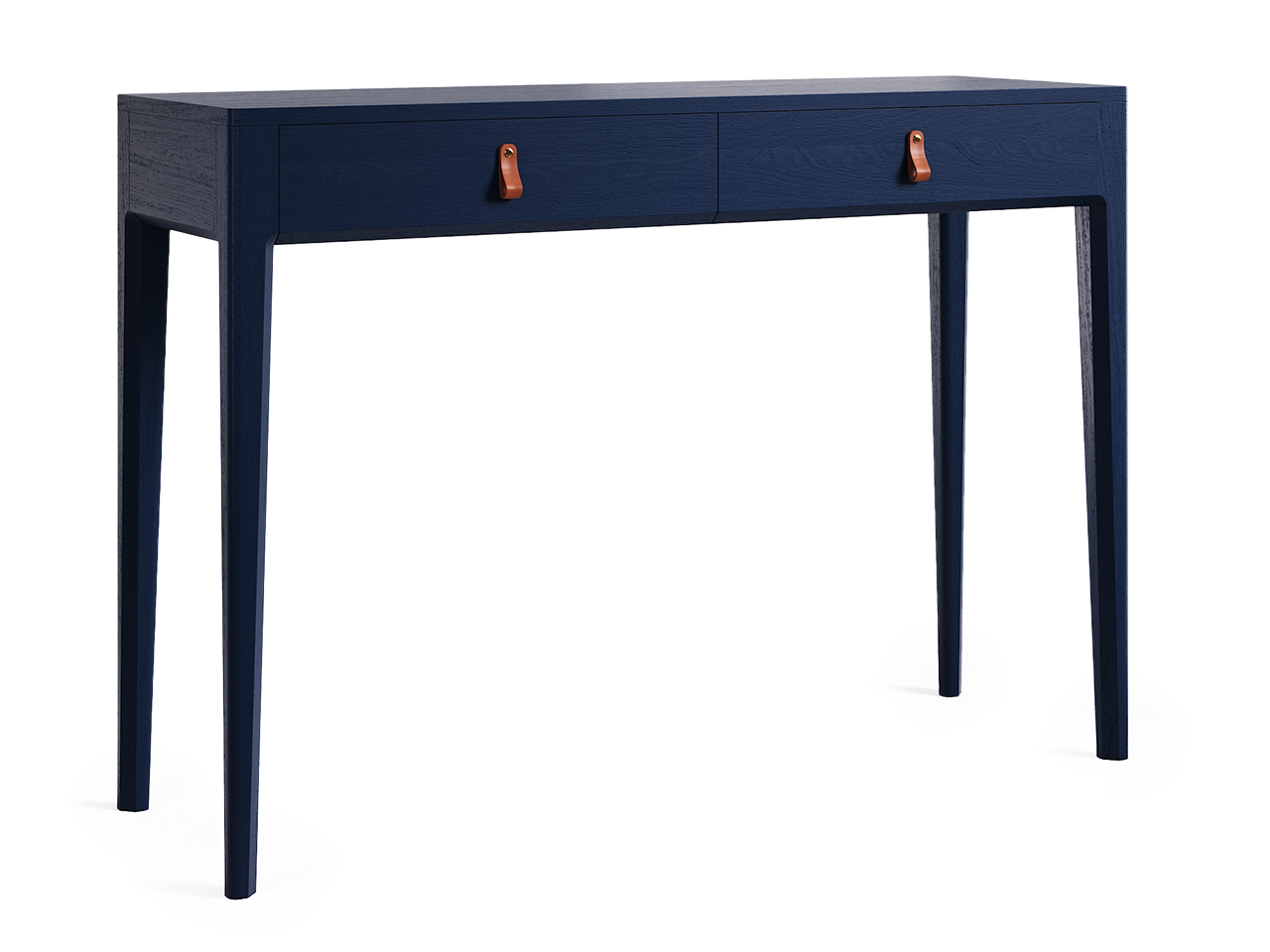 Универсальный консольный стол, который уверенно выполнит функцию косметического столика. Компактные габариты позволяют использовать стол в узком холле или небольшой комнате, а утонченный образ модели поддержан оригинальной фрезеровкой ножек и ручками из натуральной кожи, выполненными вручную мастерами The IDEA.Особенности.Заметная текстура дуба на всех деталях, покрытых эмалью.Универсальная высота 80см.Ручки из мягкой итальянской кожи.Латунированные крепления ручек.Декоративная отделка задней стенки в цвет изделия позволяет разместить стол в центре помещения.Скрытые направляющие Blum с доводчиками.Износостойкие каркасы ящиков из ЛДСП.Материалы.Каркас и ножки – массив дуба.Фасады – МДФ, натуральный шпон дуба.Ящики и перегородки – ЛДСП, светло-серый.Фурнитура – направляющие с плавным закрыванием, стальные крепежные элементы. Ручки – натуральная кожа, латунь.Покрытие – лак / эмаль.Внимание! Стол недоступен к заказу в отделке «Натуральный дуб»