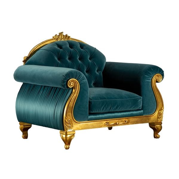 Кресло Stradivari – изящное классическое произведение мебельного искусства. Выступающие очертания изголовья коронуют экспрессивные завитки аканта. Мягкая спинка мебели декорирована пиковкой. Роскошная, шелковая или атласная плиссировка, украшающая основание и спинку, делает модель неповторимой. Мебель, с элегантным силуэтом, на резных декоративных ножках-кабриоль выглядит легко и изящно.Каркас:массив дерева и многослойная влагостойкая фанера высшего сорта, покрытая пенополиуретаном и синтепоном. Эластичное основание сидения и спинки из резинотканевых ремней.Наполнение спинки:высокоэластичный, латексоподобный ППУ, покрытый 100 полиэстеровым слоем.Наполнение локотника:высокоэластичный, латексоподобный ППУ различной плотности, покрытый 100 полиэстеровым слоем.Наполнение подушек сидения:высокоэластичный, латексоподобный ППУ высокоэластичный Memory foam.Съемность чехлов:съемные чехлы с подушек сиденья. Кресло STRADIVARI изумрудное.