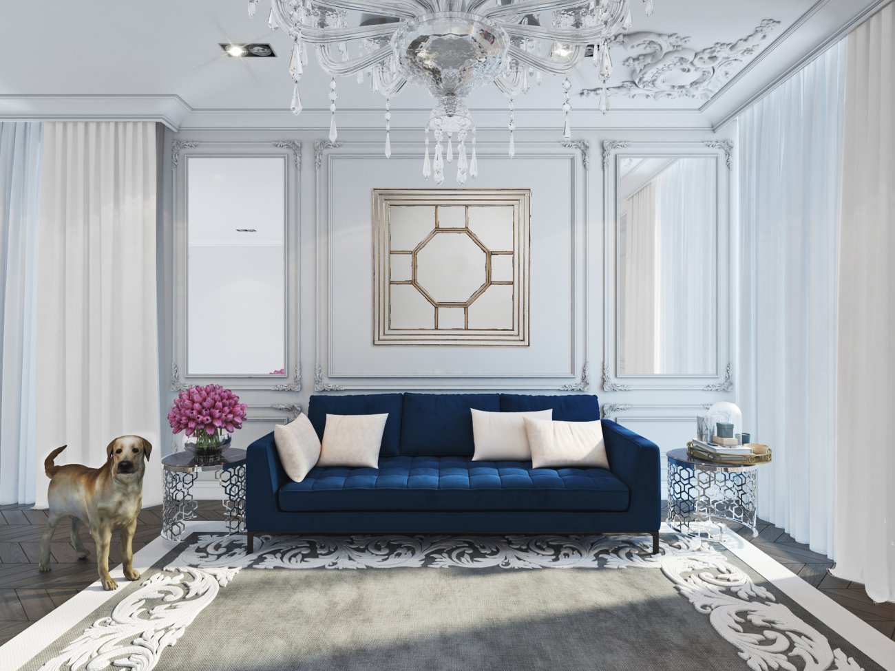Зеркало большое квадратное с декором Восьмигранник Eloise